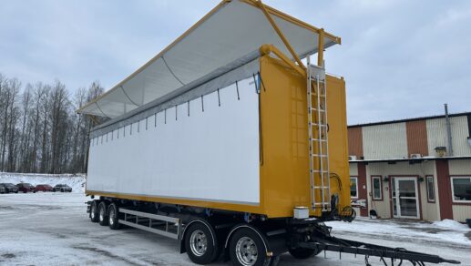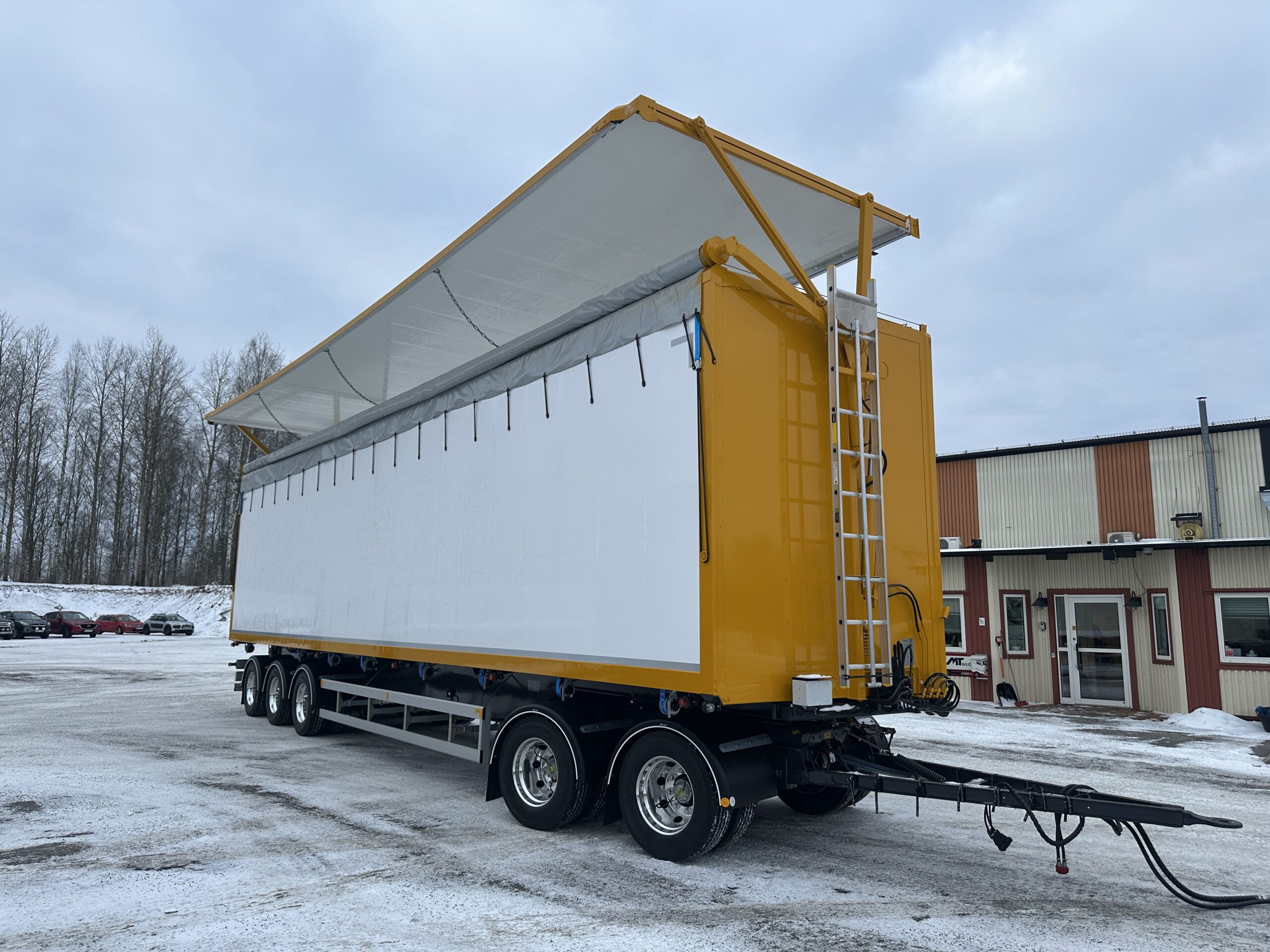 Utrustning på släpet är bland annat STEFFEN-axlar med Bevoguard däcktryckssystem och axellyft, MT strölåda, MT bandspännare och MT helisolerade golvskiva.