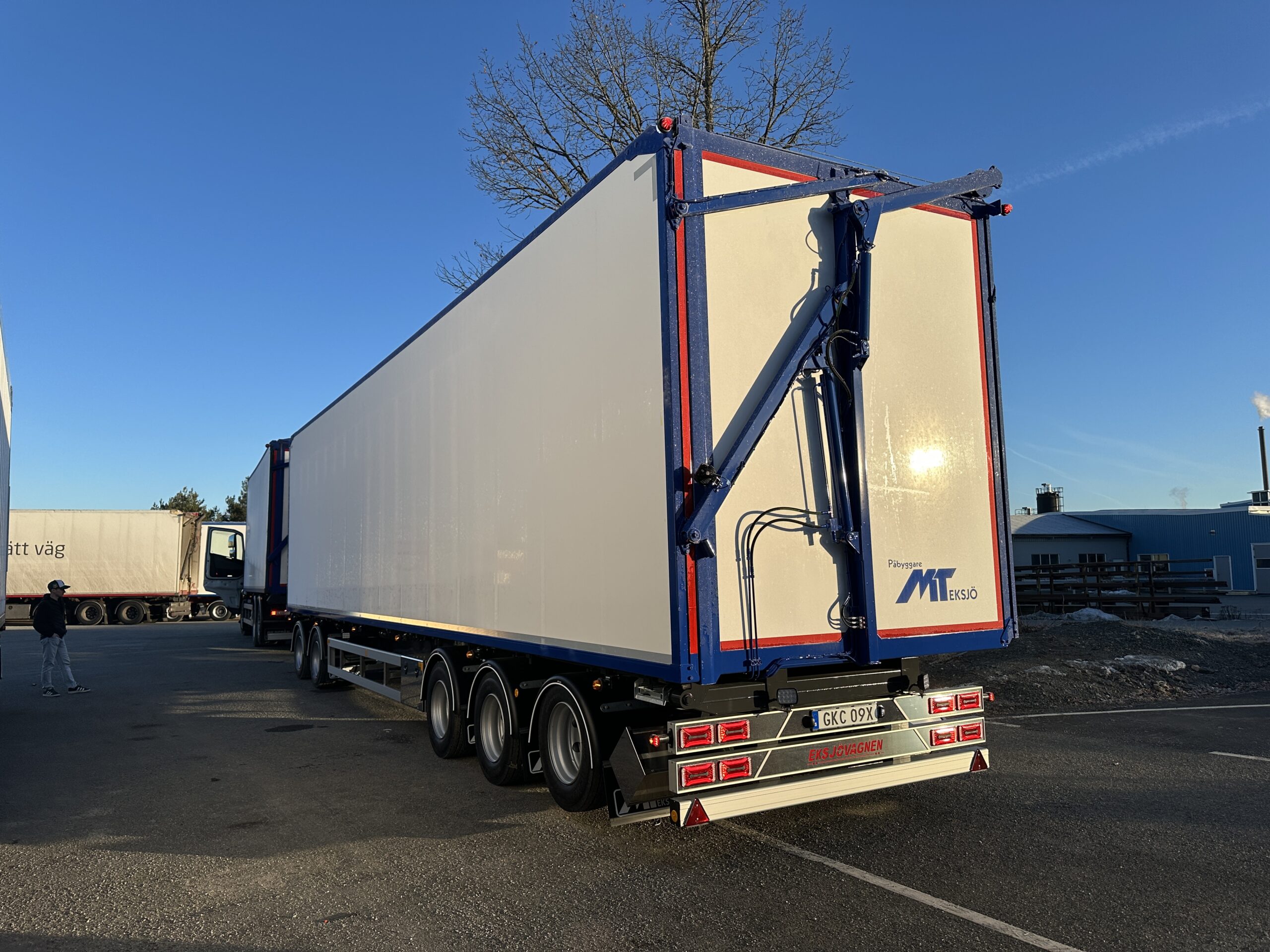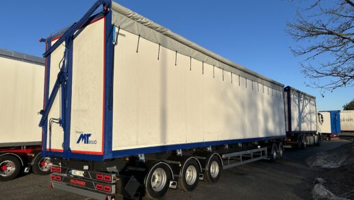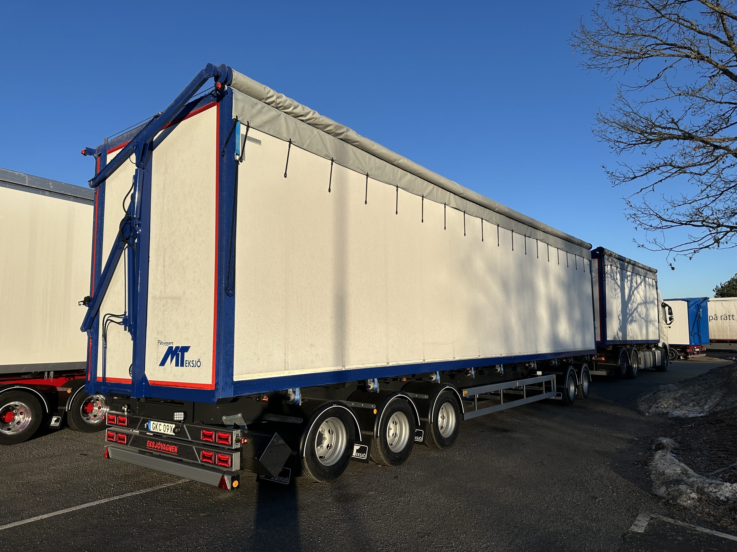Utrustning på släpet är bland annat STEFFEN-axlar, axellyft på 2st axlar, MT strölåda, MT bandspännare och golv i 24mm slitplywood.