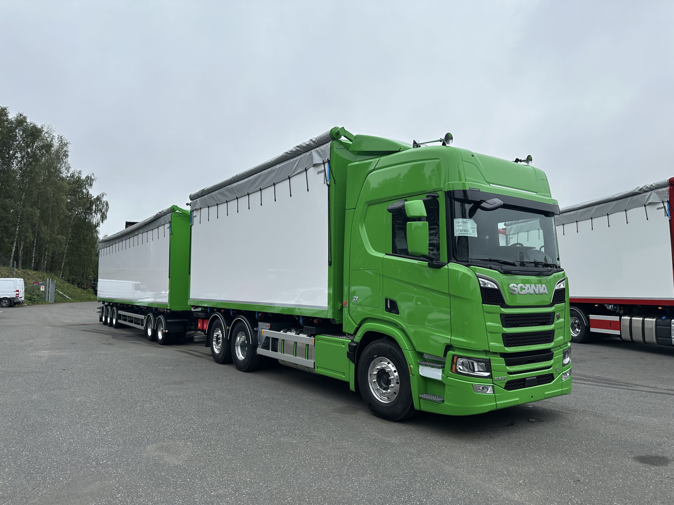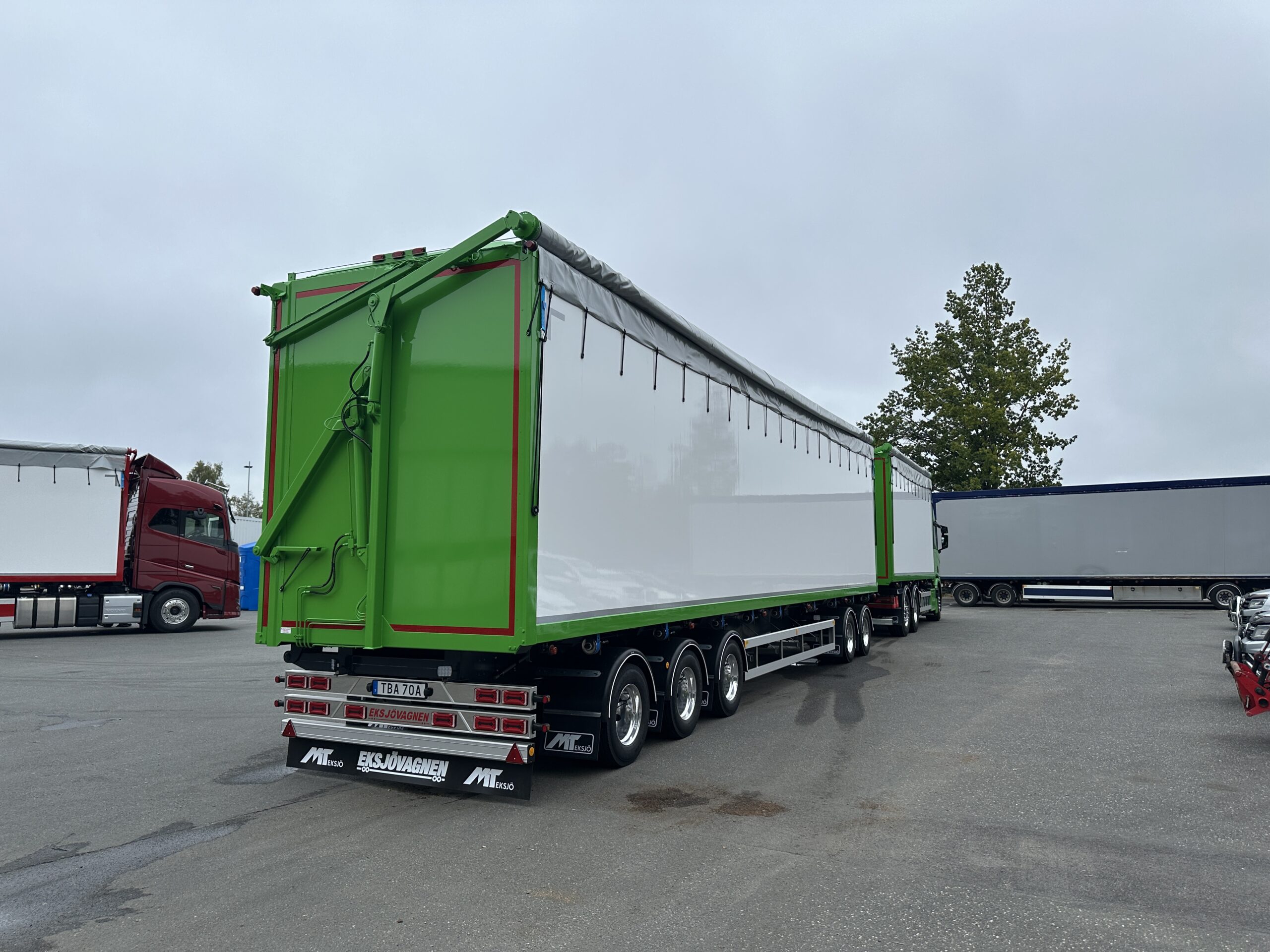 Utrustad med bland annat ROR-axlar med axellyft och Bevoguard, Slir-ej, golv i 24 mm slitplywood, MT-bandspännare MT verktygslåda och MT strölåda.