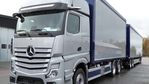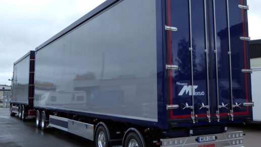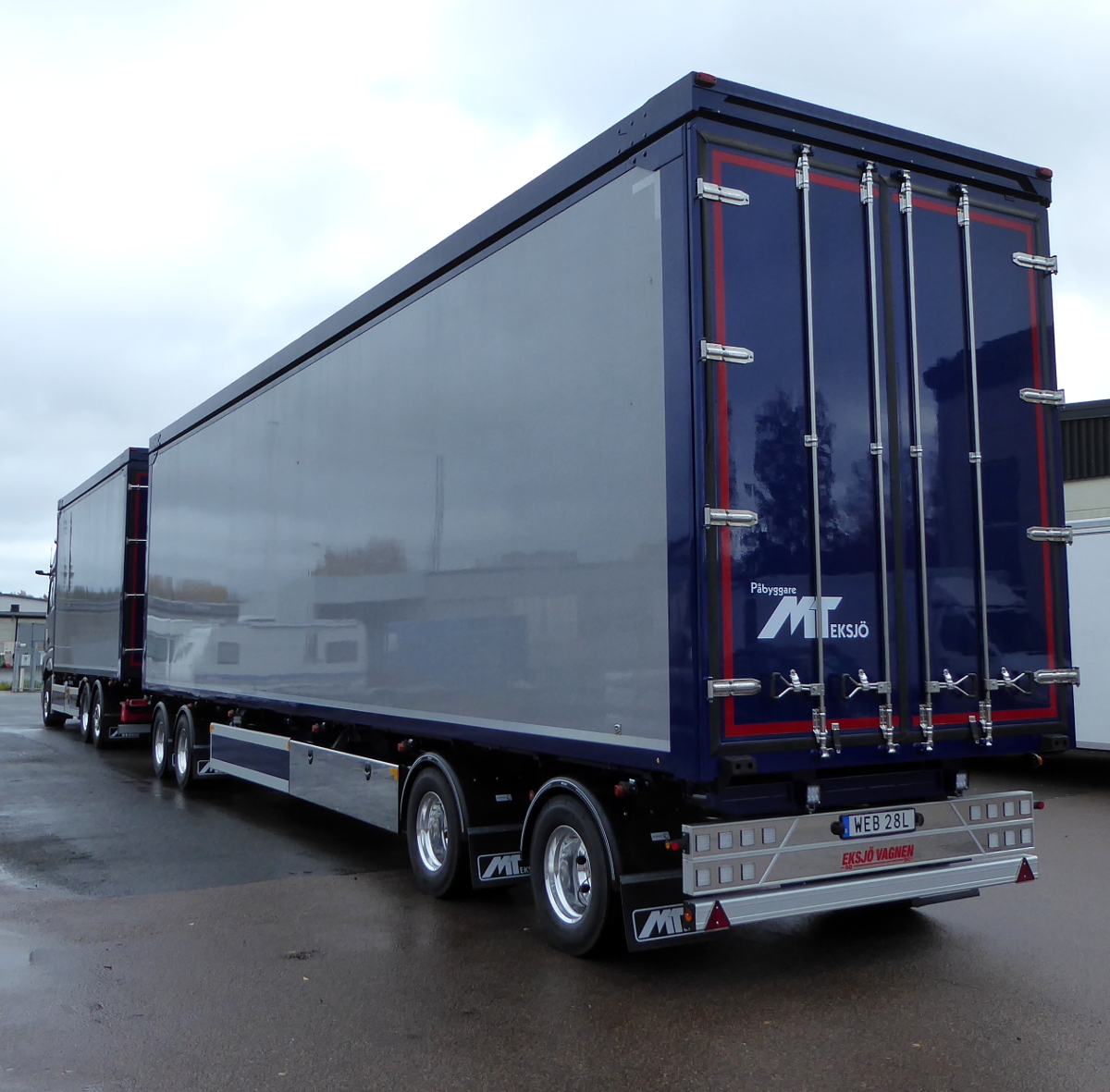 Bilen är utrustad med bland annat MT bandspännare, golv i 27 mm slitplywood , Slir-Ej och VBG draganordning.