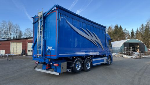 Utrustad med bland annat golv i 24mm slitplywood, MT bandspännare, VBG koppling 750V, MT verktygslåda och MT strölåda.