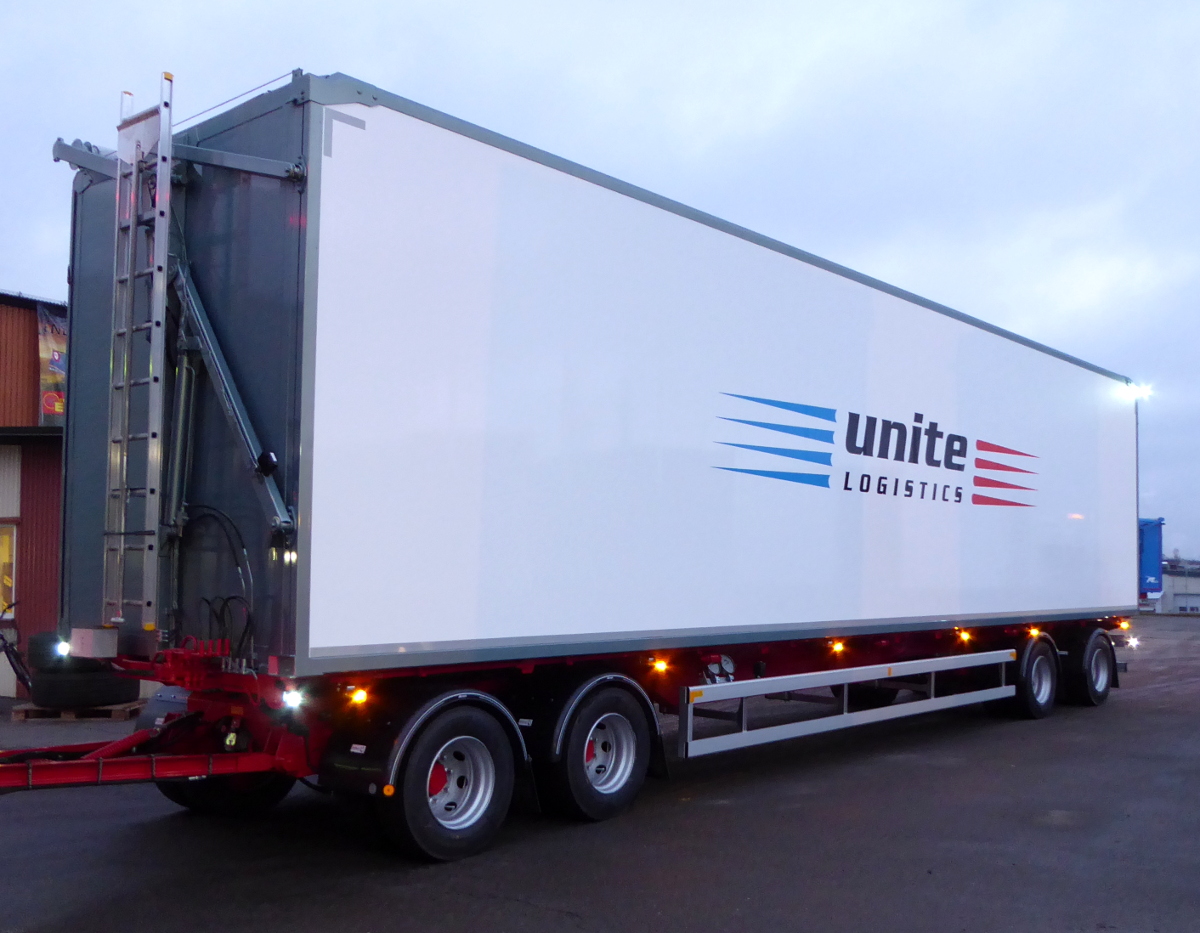 Utrustad med bland annat ROR-axlar, MT bandspännare och golv i 24 mm slitplywood.