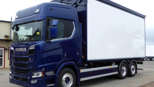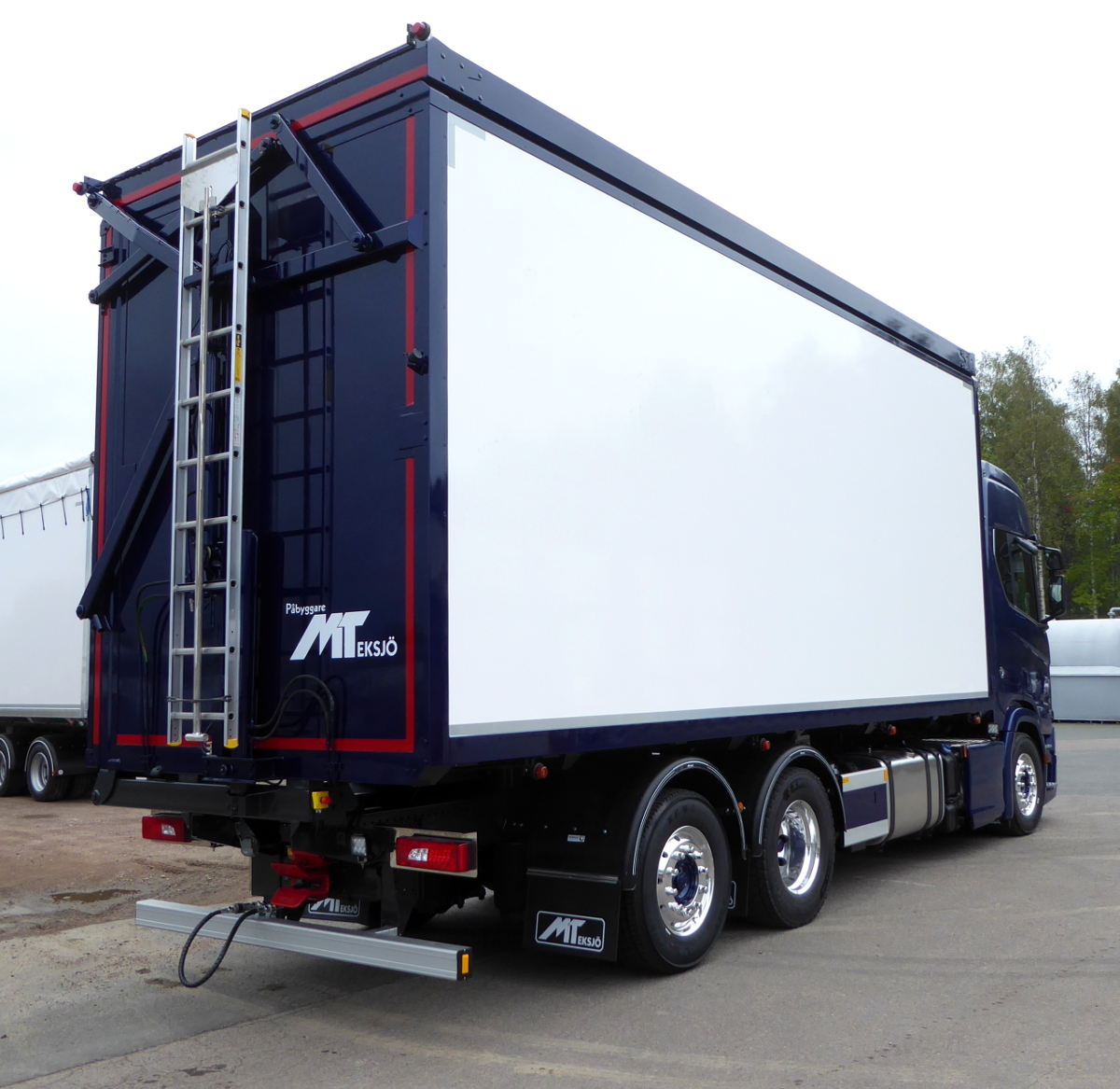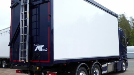 Utrustad med bland annat golv i 24 mm slitplywood, MT verktygslåda, VBG kopplingsanordning och AL-plåt mellan sidohinder.
