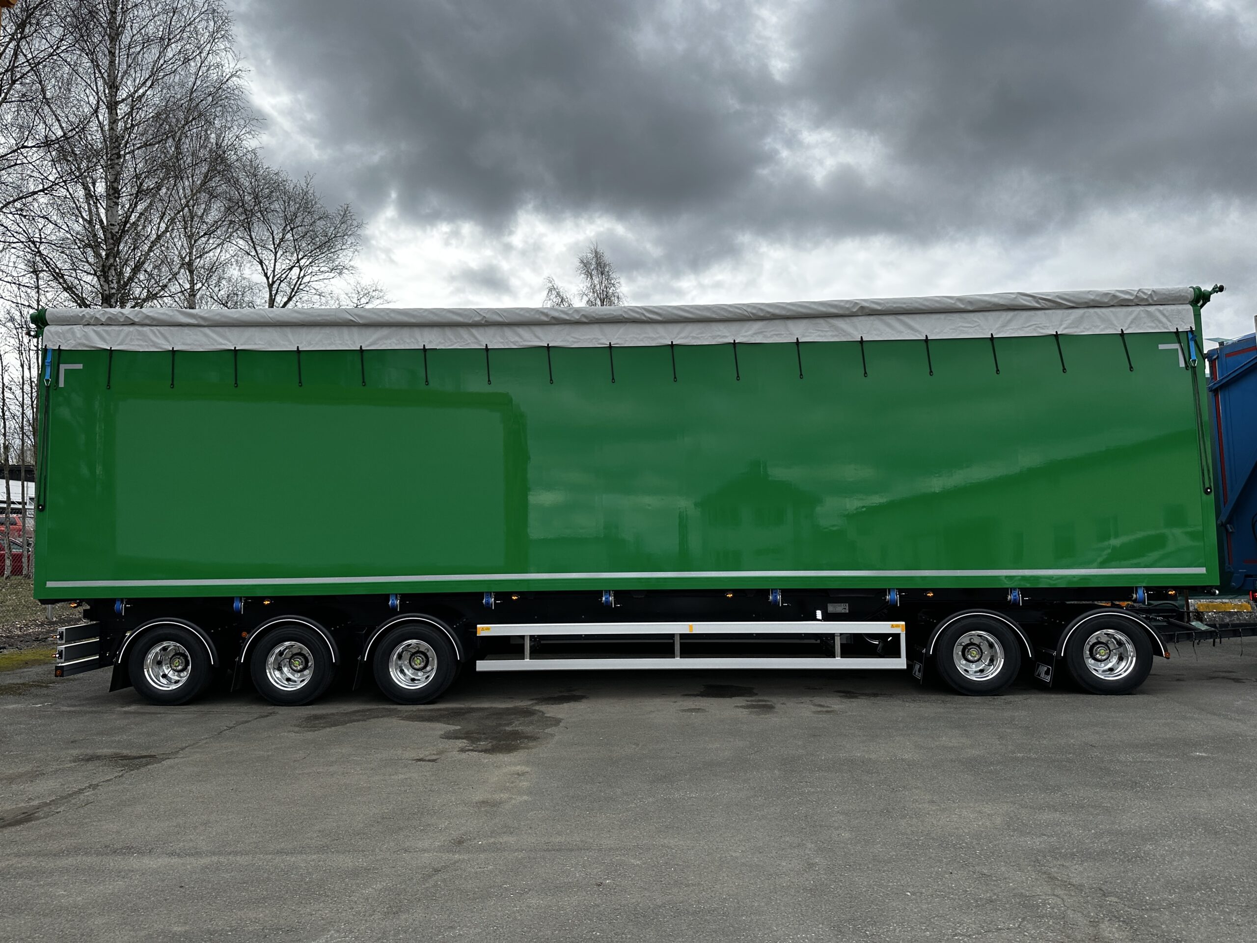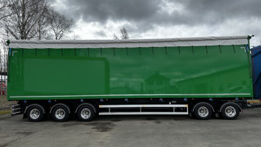 Utrustning på släpet är bland annat ROR-axlar med axellyft, MT utdragbara stege under flak, MT bandspännare och Golv i 24mm slitplywood.