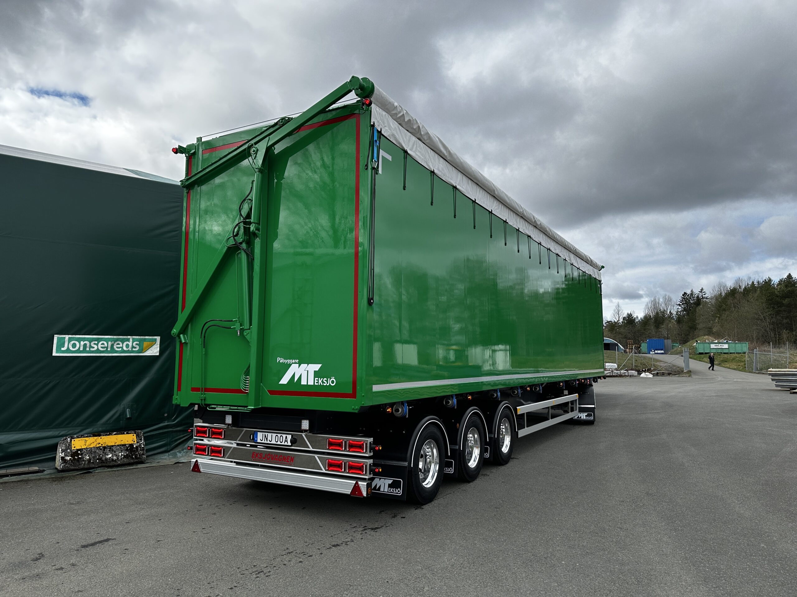 En flissläpsbyggnation på en Eksjövagnen 18-24 med rulltäckning.